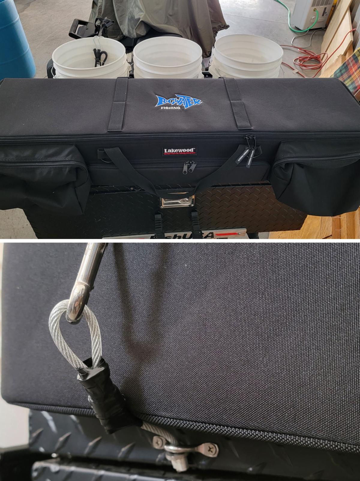 > Ross: “I use them with a combination of wire and carabiner to secure large items like my Lakewood Greenback rod and lure storage case. This makes it very easy to use while fishing but also remove it for travel or in the off season.”