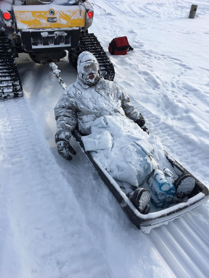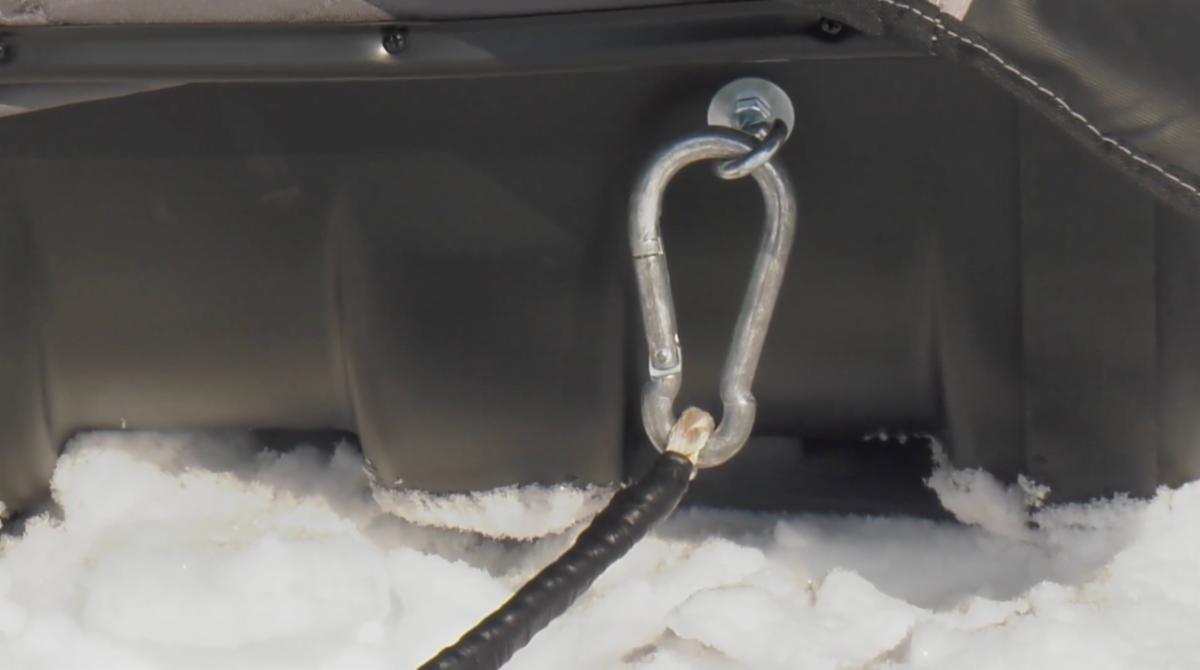 > J-Mitch: “If you’re pulling your Fish Trap out by hand and putting a lot of miles on it, there’s a simple modification you can use to make things easier. When you buy a Fish Trap, there’s holes in the sled and a simple black rope knotted through them. If you’re not going to tow it far, this works fine.