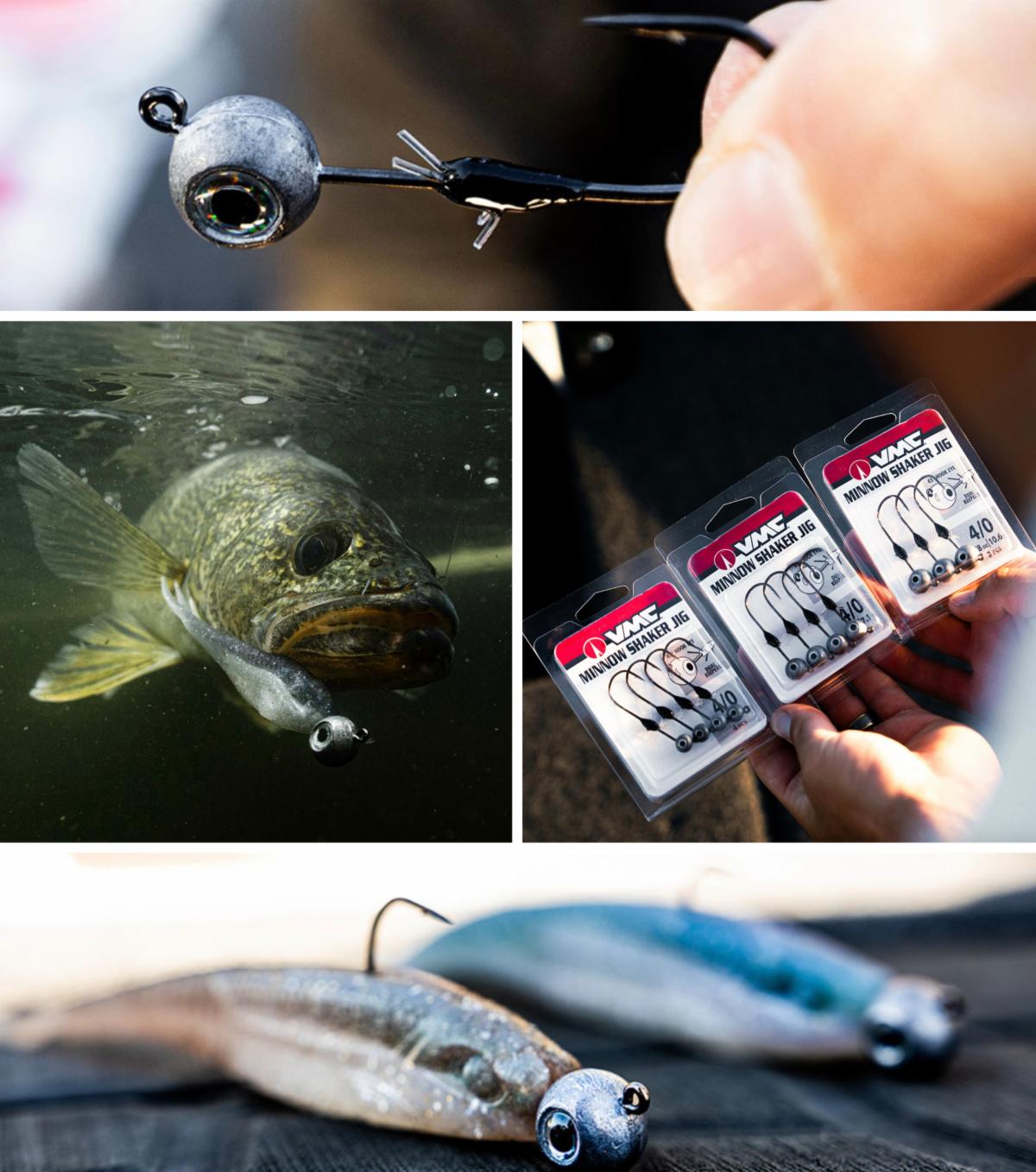 > Purpose-built for soft plastic minnow baits like the CrushCityFreeloader and Mooch Minnow, the new VMC Minnow Shaker, features a unique 45-degree line tie – the only jig in the market with this angle – which maximizes the rolling action of the minnow.