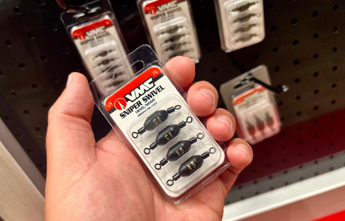 > Featuring a premium weight and swivel combination...perfect for power corking for suspended fish.... Built to effectively reduce line twist, the VMC Sniper Swivel helps anglers control their presentation with accurate casts or vertical fishing applications. Constructed with a durable and stealthy black oxide finish that reflects less light, the VMC Sniper Swivel utilizes lead-free brass weights that are laser etched on the side for easy size identification.
