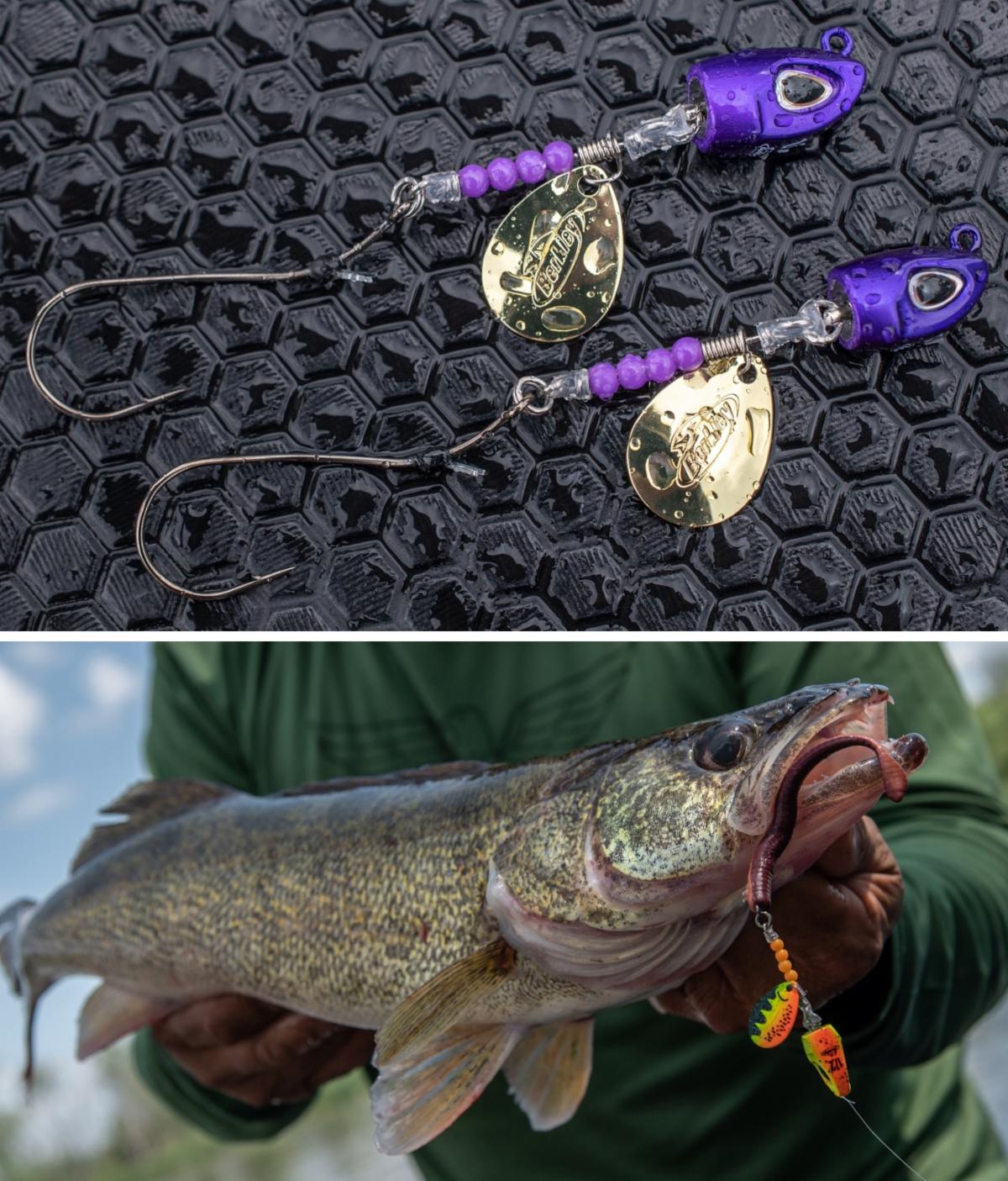 > The Snitch Jig features a weight-forward teardrop shaped head to maximize water flow to the blade which makes the blades turn at the slowest of speeds. As the blades spin, they effortlessly emit wicked vibration and flash, like a dinner bell for a walleye.
