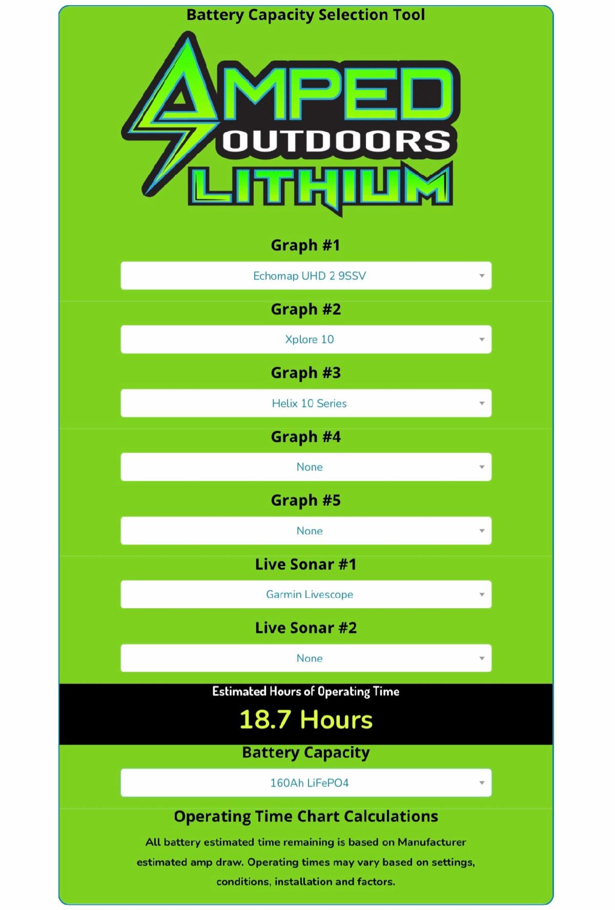 Gotta give props to Amped Outdoors on coming up with a way for folks (who aren’t rocket scientists 😅) to estimate the total run time different size batteries would give your rig based on the exact electronics you have. It’s called the Battery Capacity Selection Tool and is super slick!