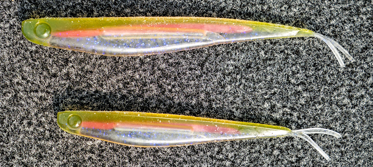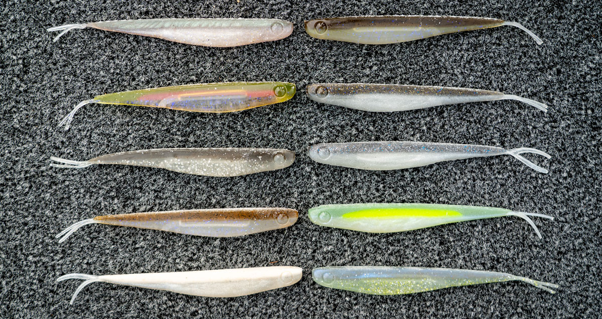 Besides the Minnow (shown above), there's a couple other bassy-er profiles/shapes coming right off the bat, including a Flat Worm and Finesse Worm.