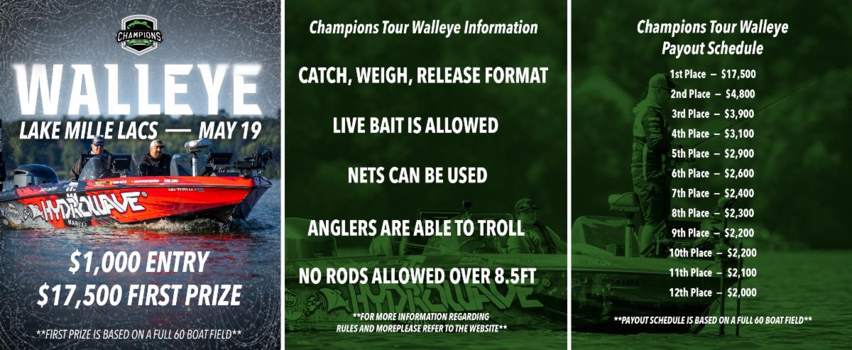 ...the Champions Tour WALLEYE event thatās coming to Mille Lacs on May 19 out of Hunters Point. Capped at 60 boats. More info or register here.