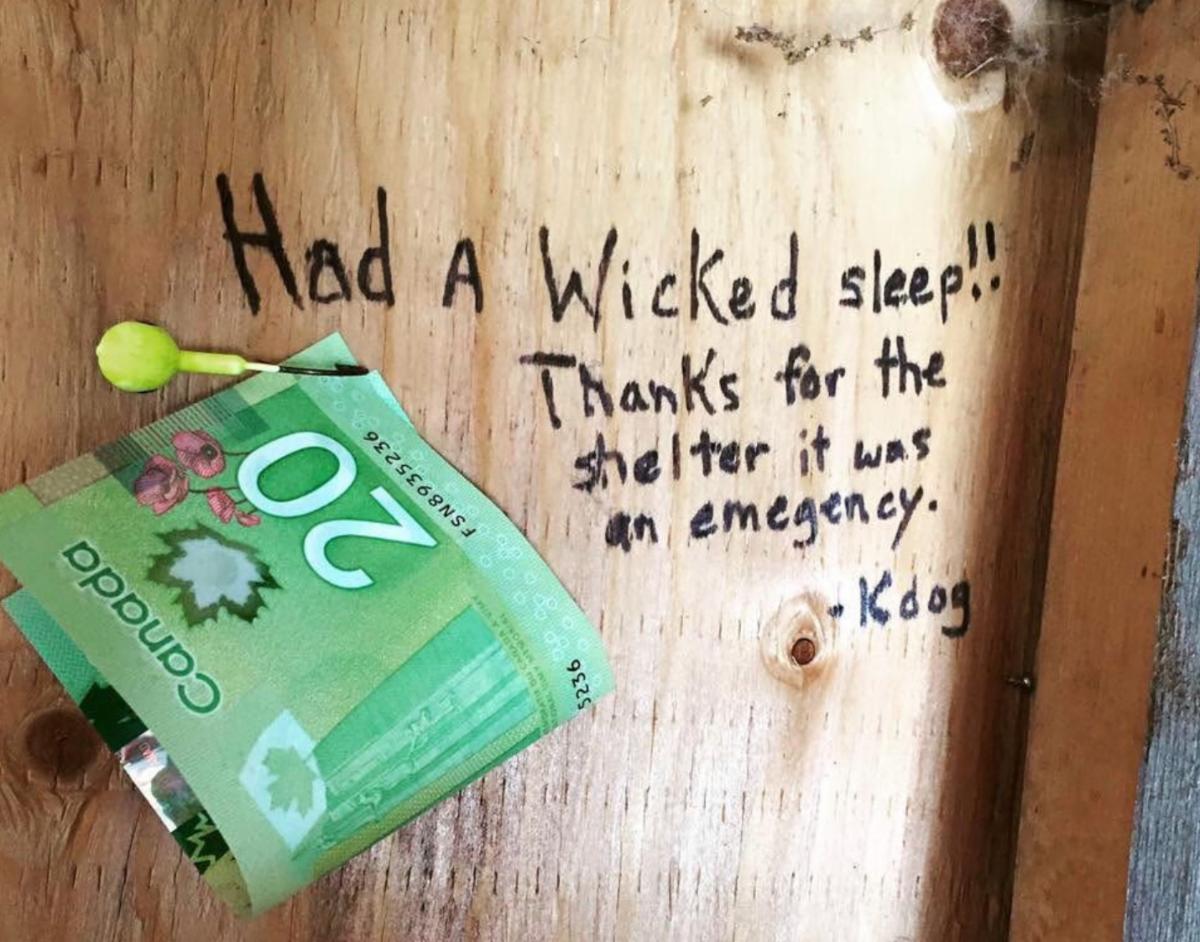> “Most of the time our shack is broken into with the intent of theft or destruction...this time it was not the case...glad to see there are still some good folks out there! Our response to these visitors: Anytime k-dog!”