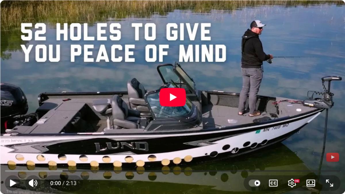 > We’re so confident in Lund’s quality and safety that we put it to the test by drilling 52 holes into our Impact XS. Lund boats aren’t just built to perform; they’re built to keep you safe in nearly any situation.
